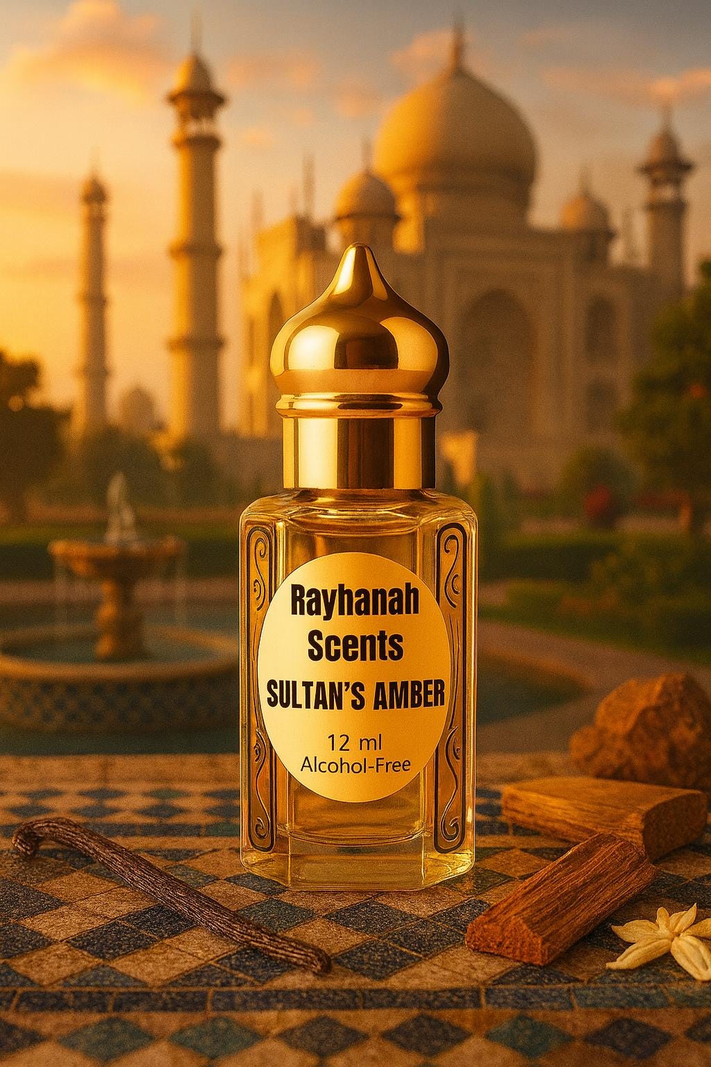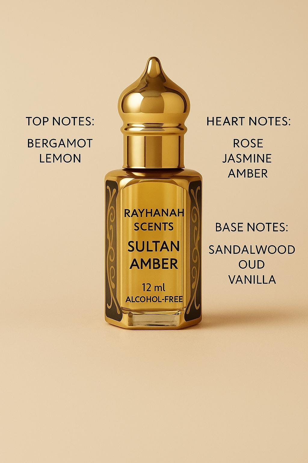 Sultan’s Amber by Rayhanah Scents is a luxurious alcohol-free perfume oil inspired by the warmth of Arabian nights. Hand-blended for richness and longevity.