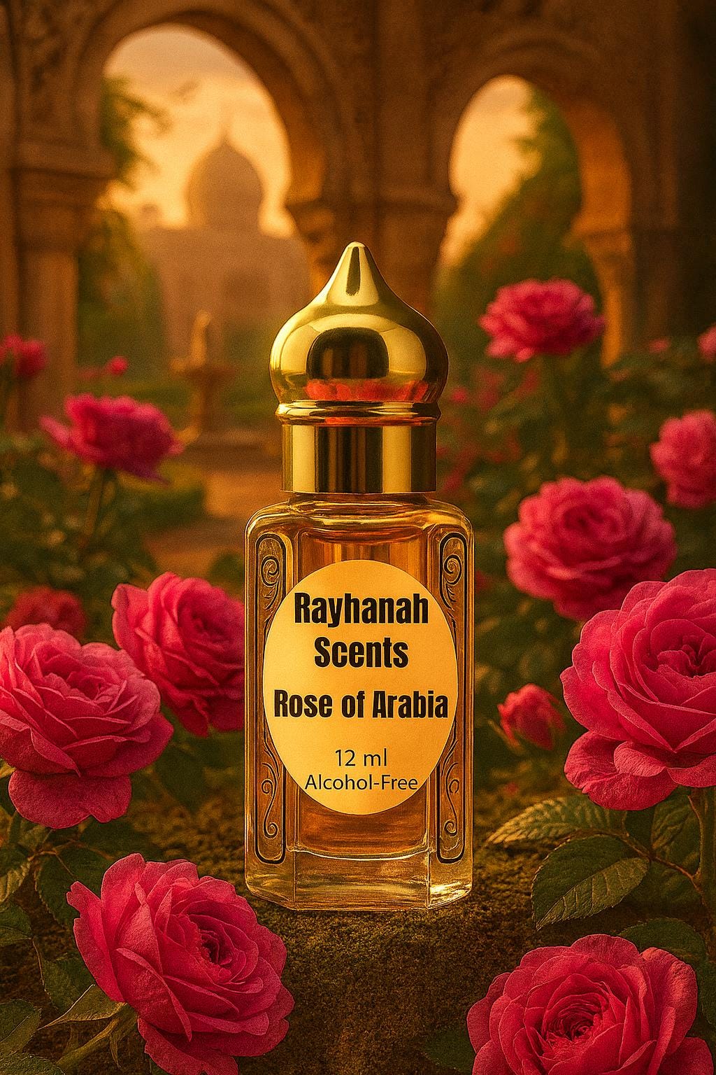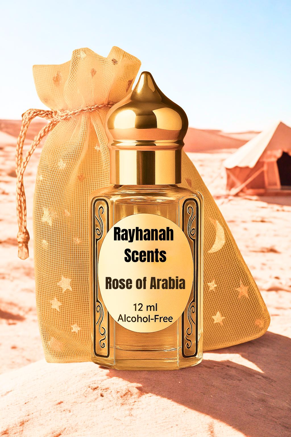 Rose of Arabia by Rayhanah Scents is a luxurious non-alcoholic perfume oil blending the timeless elegance of oud and rose with warm amber and soft musk. Crafted in the tradition of Arabian perfumery, this rich scent lingers beautifully on the skin, leaving a trail of sophistication and warmth.